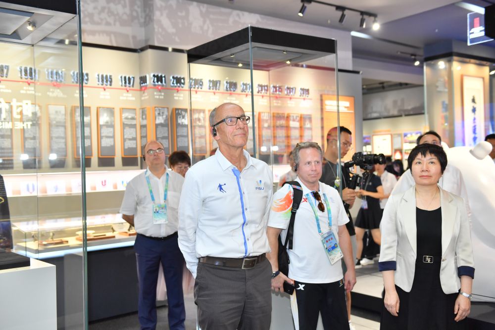 國(guó)際大體聯(lián)代理主席雷諾·艾德參觀成都大運(yùn)會(huì)博物館
