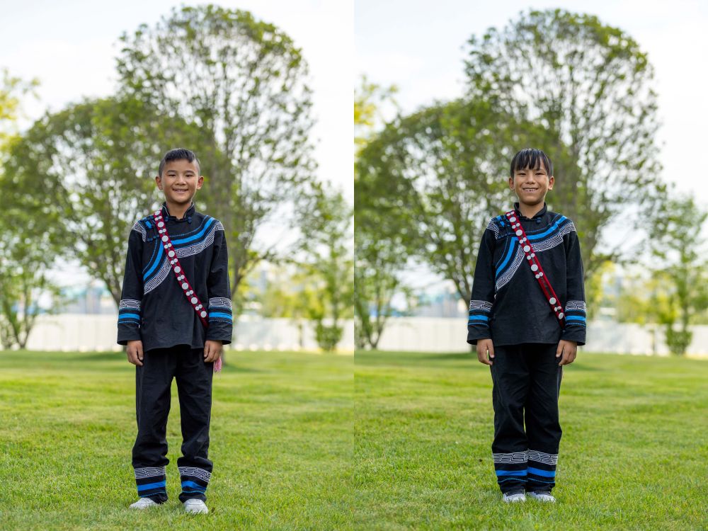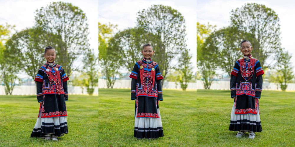 拼版照片:7月23日在成都大運(yùn)會(huì)開幕式彩排之前拍攝的馬杰英(左)、吉合拉作和俄地惹漢(右)。新華社記者沈伯韓 攝