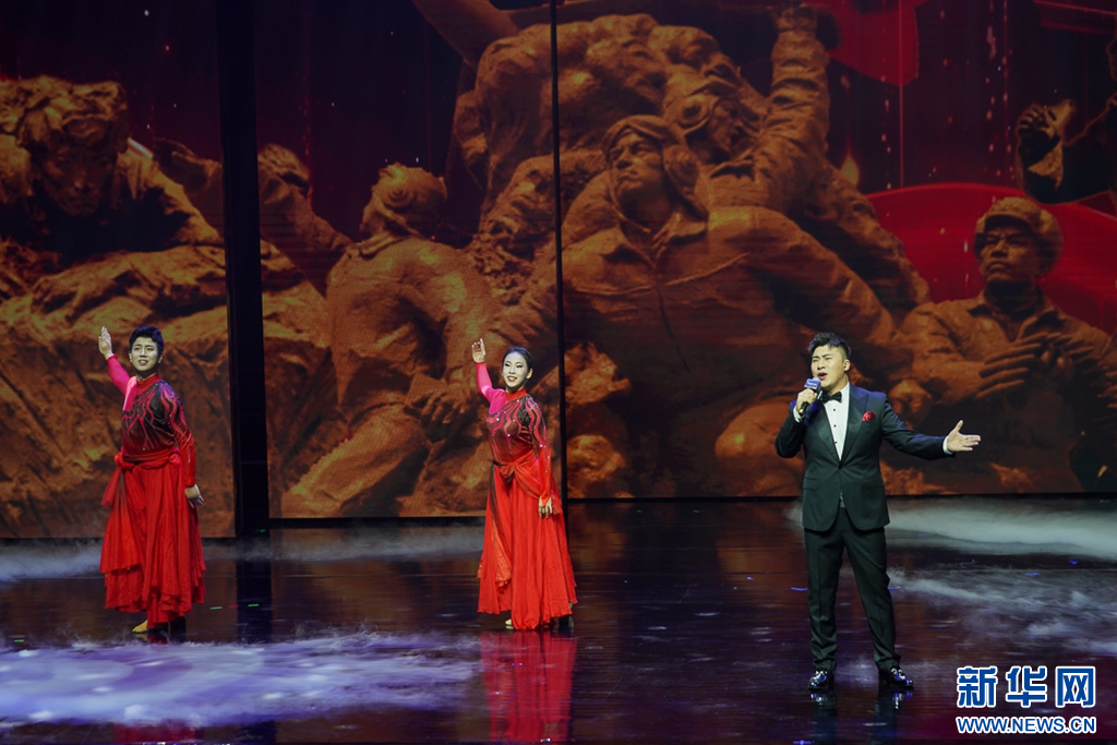 這是7月17日晚上拍攝到的晚會序幕,鋼琴協(xié)奏曲《黃河》第四樂章:保衛(wèi)黃河。新華網 肖和勇 攝
