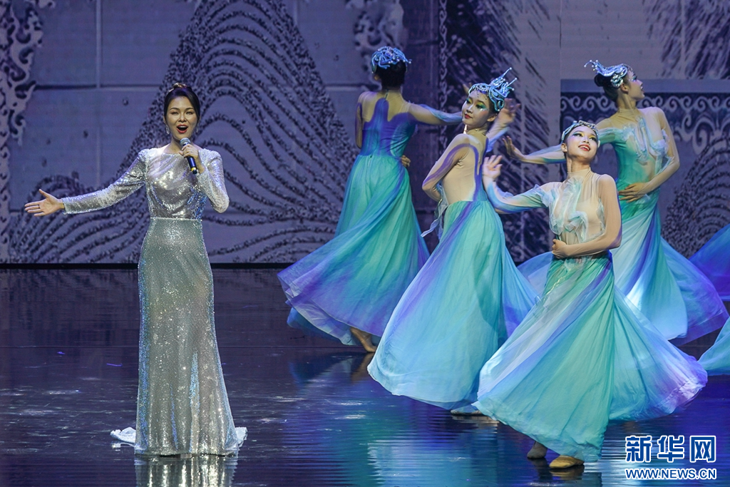 7月17日晚上,青年歌手佟雨軒(右)在演唱歌曲《追尋》(7月17日攝)。新華網 肖和勇 攝