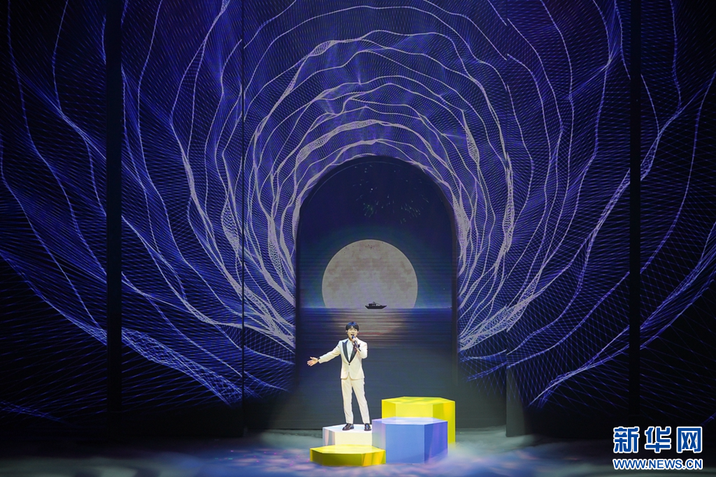 7月17日晚上,青年歌手周深在演唱歌曲《夢想的遠征》。新華網 肖和勇 攝