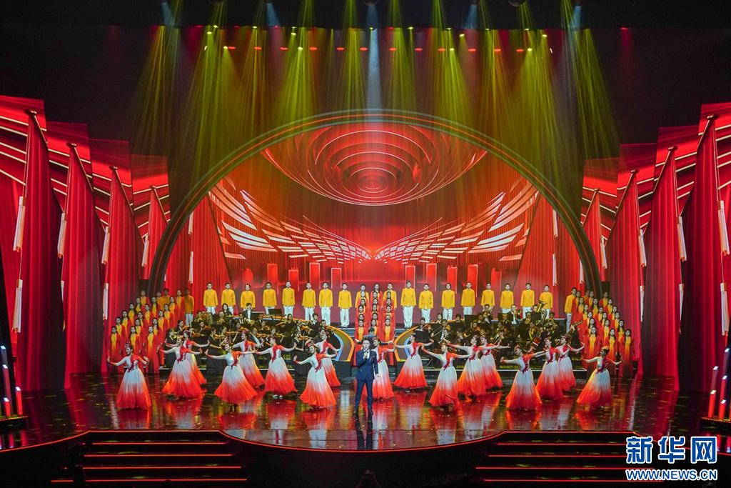 這是7月17日晚上拍攝到的晚會尾聲,交響合唱《人民至上》。新華網 肖和勇 攝