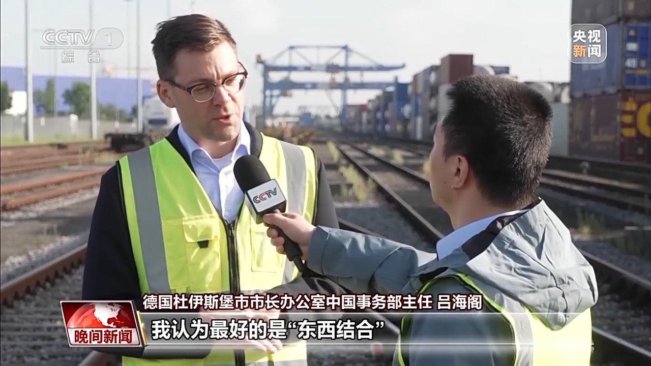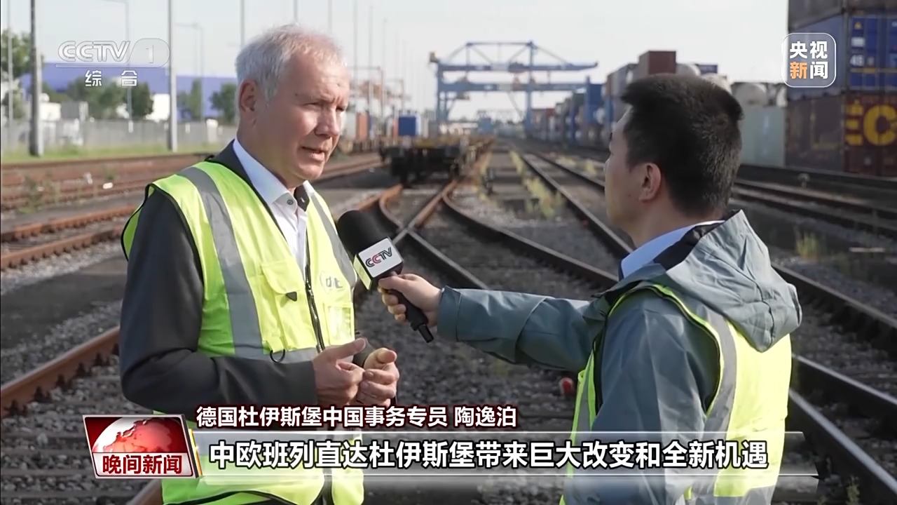 德國(guó)杜伊斯堡中國(guó)事務(wù)專員 陶逸泊:中歐班列直達(dá)杜伊斯堡帶來(lái)巨大改變和全新機(jī)遇。這條線路綿延上萬(wàn)公里,從中國(guó)出發(fā)穿越6個(gè)國(guó)家,抵達(dá)我們這里。一切工作能在十幾天內(nèi)完成,非常了不起。